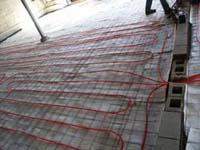 the poured concrete floor. Underslab insulation was set down and the radiant